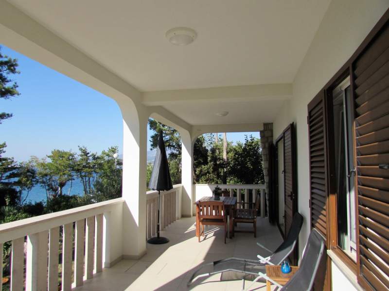 Vrlo dobro održavan apartman s prekrasnim pogledom na more. Prostran i s velikom terasom s puno mogućnosti za sjedenje, ležanje, sunčanje i sušenje rublja. Izravan pristup moru nasuprot.
