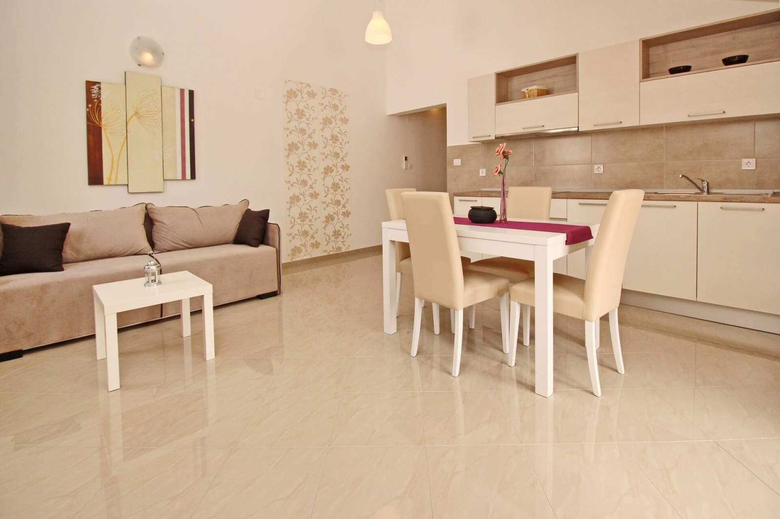 Dieses moderne Apartment befindet sich in einem Haus mit gemeinschaftlichem Pool, 300 m vom Hauptstrand von Baska und 200 m vom Stadtzentrum entfernt.