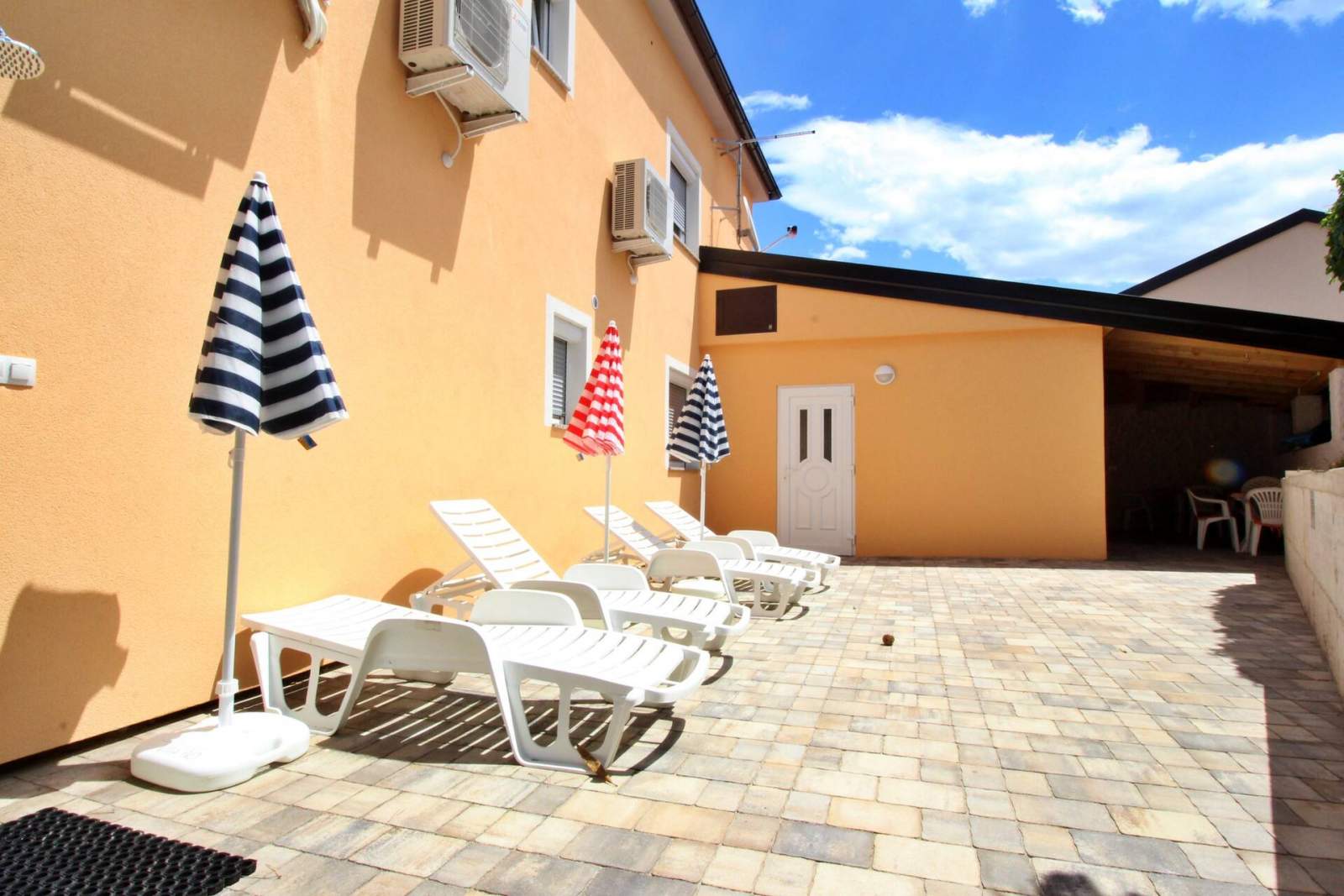Gäste können kostenloses WLAN, Klimaanlage und einen Parkplatz im Hof ??nutzen. Der 90 m2 große, gemeinsam genutzte Außenbereich umfasst einen Grillplatz und eine Außendusche, ideal zum Entspannen nach einem Tag am Strand. Egal, ob Sie auf dem Balkon mit Blick auf das Meer entspannen oder die nahegelegenen Städte erkunden möchten, dieses Apartment bietet alles, was Sie für einen komfortablen und angenehmen Aufenthalt benötigen.