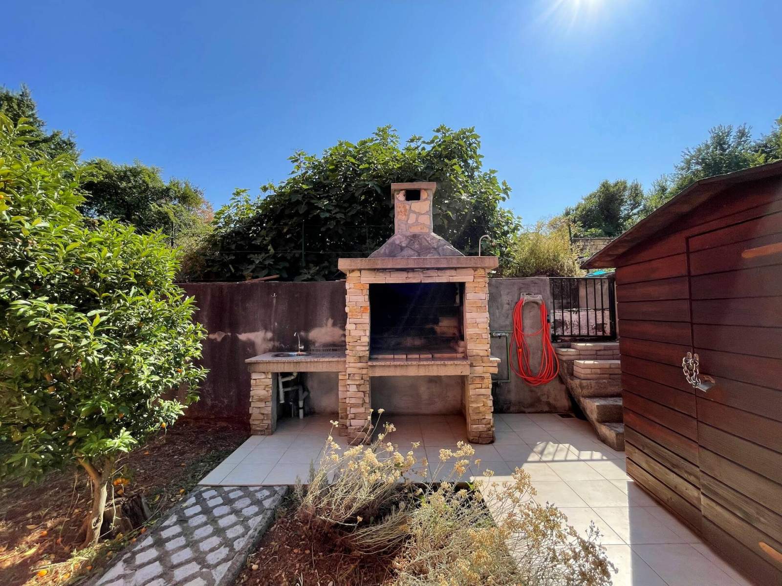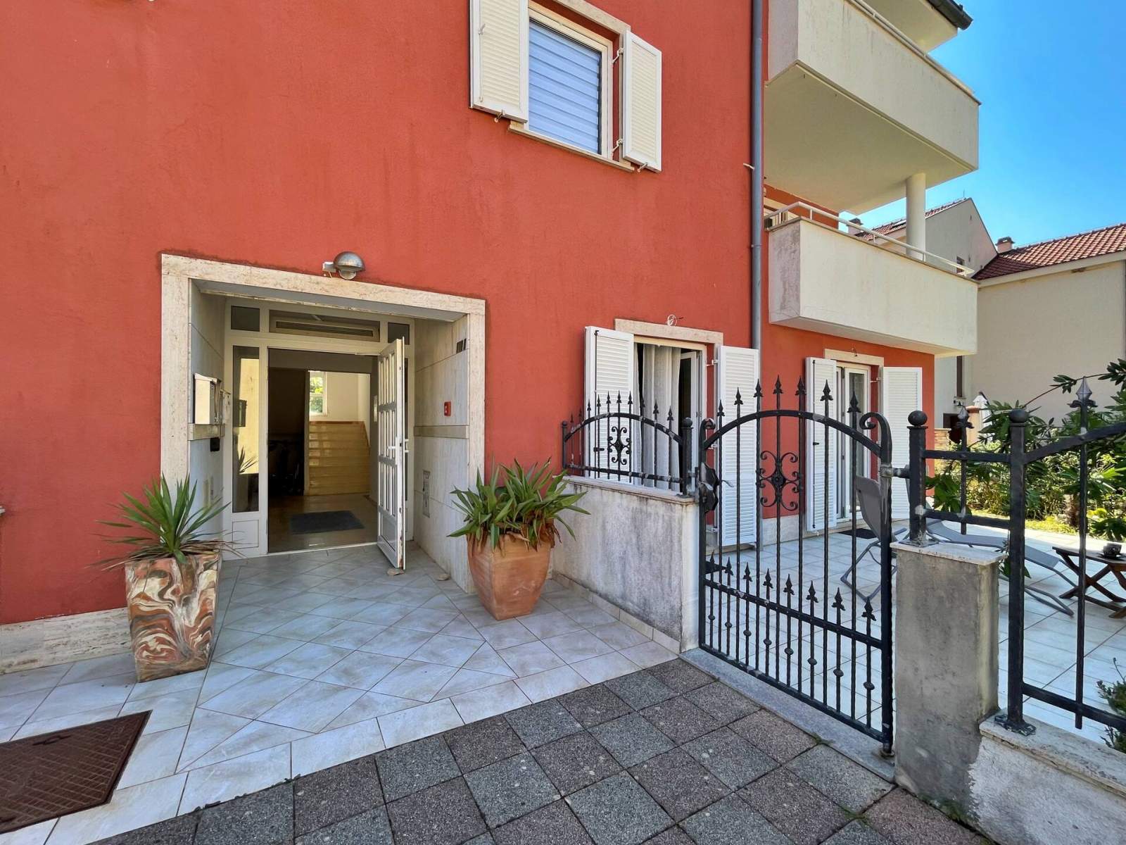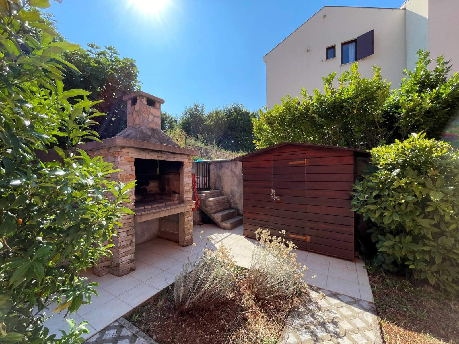Zu den Außeneinrichtungen gehören ein Grillbereich und eine Außendusche. Vor dem Haus gibt es auch einen privaten Parkplatz. Egal, ob Sie die nahegelegenen Strände genießen, das geschäftige Stadtzentrum erkunden oder einfach auf Ihren privaten Terrassen entspannen, dieses Apartment bietet alles, was Sie für einen unvergesslichen Aufenthalt brauchen.