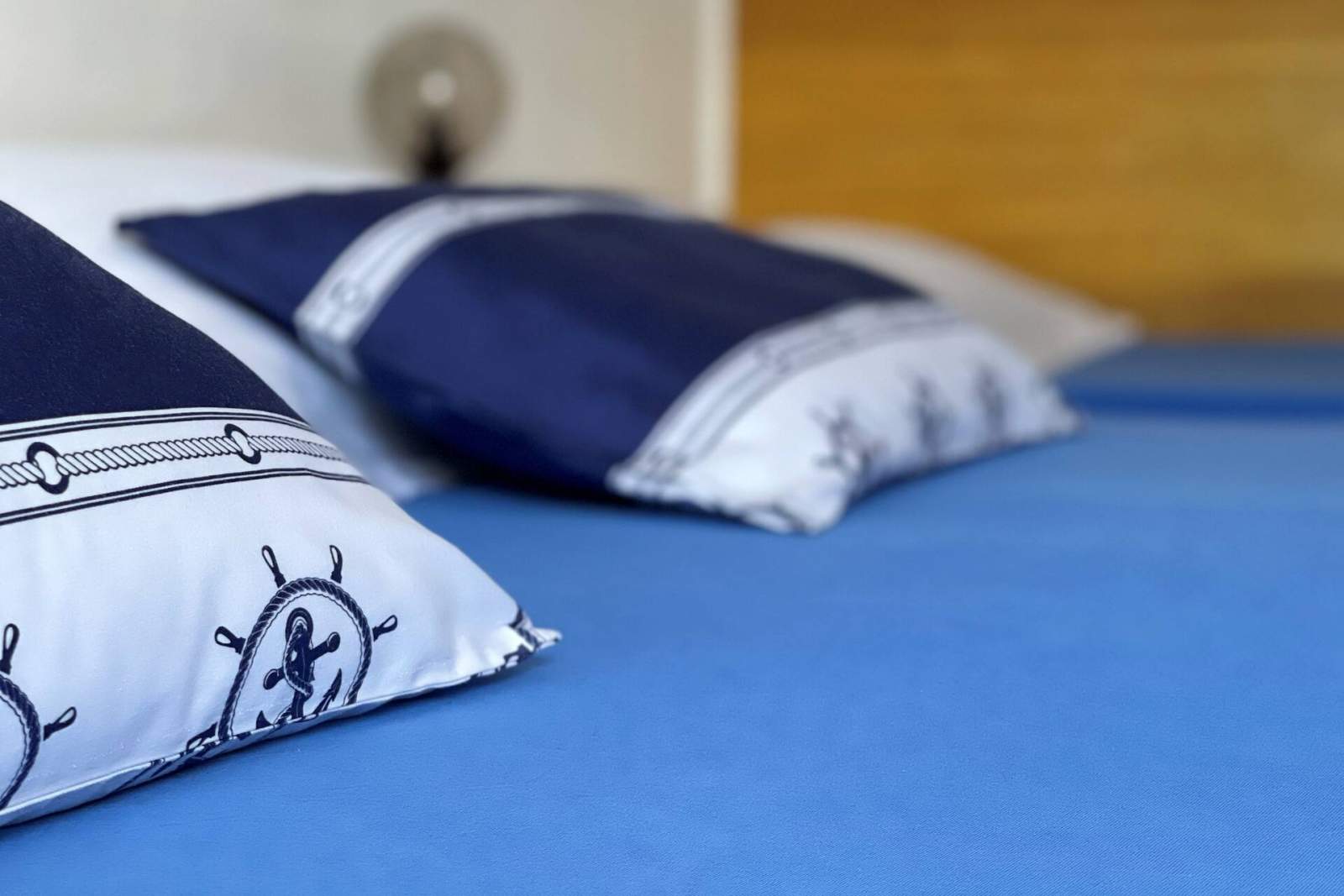 Diese charmante Dachgeschosswohnung im 2. Stock liegt nur 270 Meter vom Meer und Sandstrand entfernt und bietet einen perfekten Ort zum entspannen mit Meerblick. Die geräumige, 35 m2 große private Terrasse ist teilweise überdacht und mit ihrem Außentisch ideal zum Essen geeignet. Sie ist mit einem Grill ausgestattet und bietet einen gemütlichen Ort zum Entspannen. Im Inneren bietet die moderne Küche alles, was Sie zum Kochen brauchen, darunter einen 4-Flammen-Ceranherd, einen Backofen, einen Kühlschrank mit Gefrierfach, eine Kaffeemaschine, einen Wasserkocher, eine Mikrowelle, einen Mixer und einen Geschirrspüler. Der Wohn-/Essbereich umfasst ein bequemes Sofa, einen Esstisch, Satellitenfernsehen, WLAN und eine Klimaanlage. Zu den drei Schlafzimmern gehört eines mit einem Doppelbett und einem Einzelbett und zwei weitere mit Doppelbetten. Die Wohnung verfügt über zwei Badezimmer für zusätzlichen Komfort – eines mit Badewanne, Toilette, Waschmaschine und Haartrockner und ein zweites mit Dusche und Toilette. Ein privater Parkplatz steht zur Verfügung. Bettwäsche, Handtücher, Bügeleisen und Bügelbrett werden auch bereitgestellt, um Ihnen einen angenehmen und sorglosen Aufenthalt zu ermöglichen.