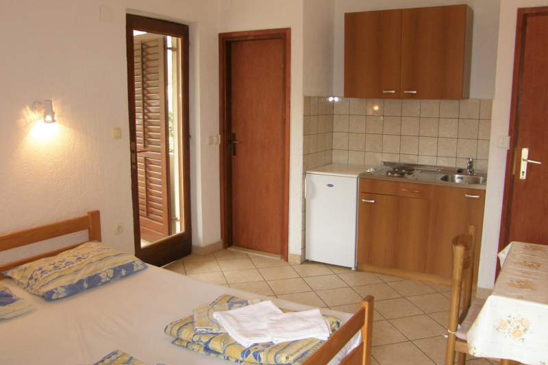 Studio apartment for max 2 persons on the ground floor, surface around 16 m2.