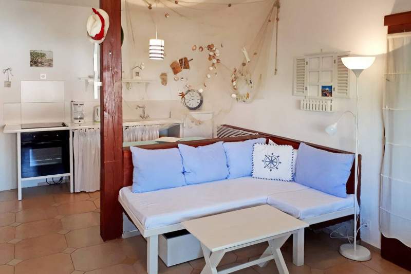 Apartment for 2-3 persons on the ground floor, surface around 50 m2, with one bedroom (queen size and a single bed).