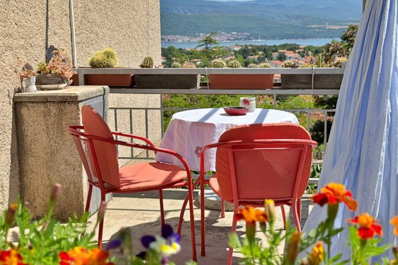 Spend your holiday in a cozy apartment in the fishing village of Šilo on Krk. Perfect for 2-3 guests, it’s just 280 m from the sea and 400 m from the beach. Enjoy a 20 m2 terrace with a sea view and portable BBQ. The apartment has a bedroom with a queen bed and single bed, a kitchen with essential appliances, air conditioning, Wi-Fi, Sat-TV, and private parking. The owner lives on-site for any assistance, ensuring a comfortable stay.