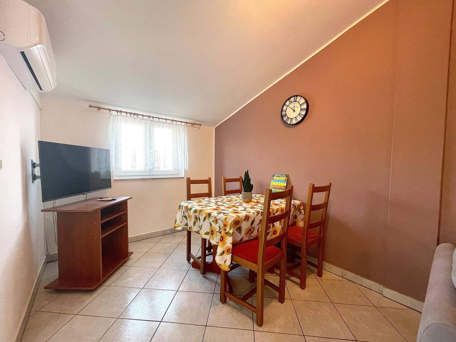 The apartment is equipped with air conditioning, SAT TV and free Wi-Fi.