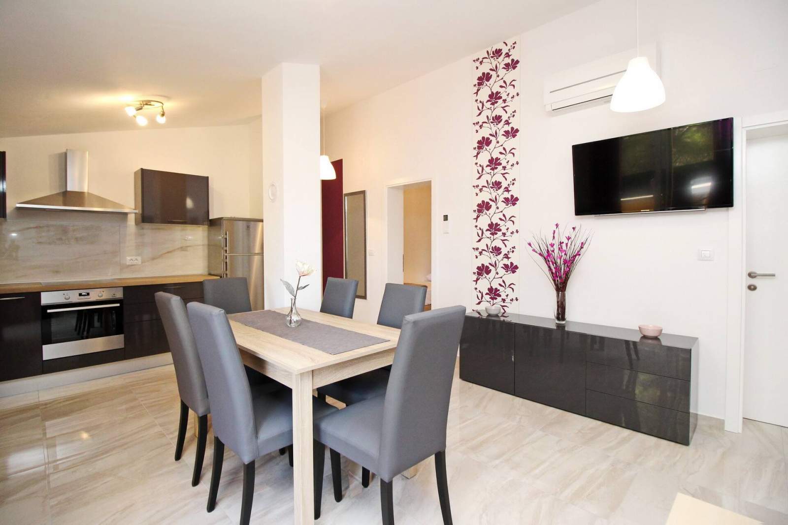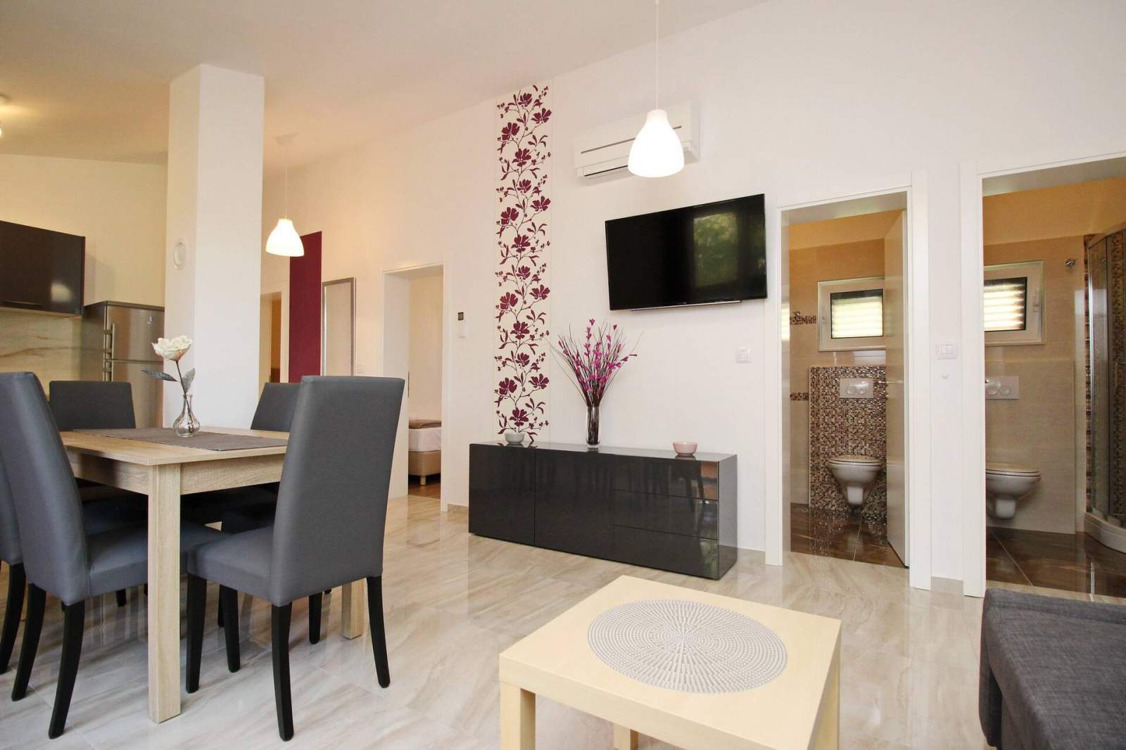 The apartment is equipped with air conditioning, SAT TV and free Wi-Fi.