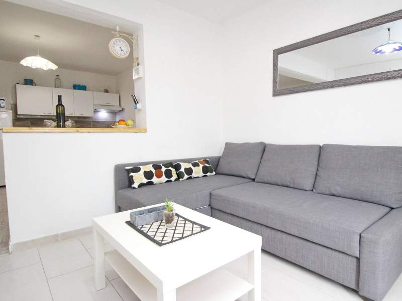 Spanning over 35 m2 the apartment features a bedroom with double bed, bathroom with shower and toilet, living room with an additional bed on the couch for 2 persons and a fully equipped kitchen.
