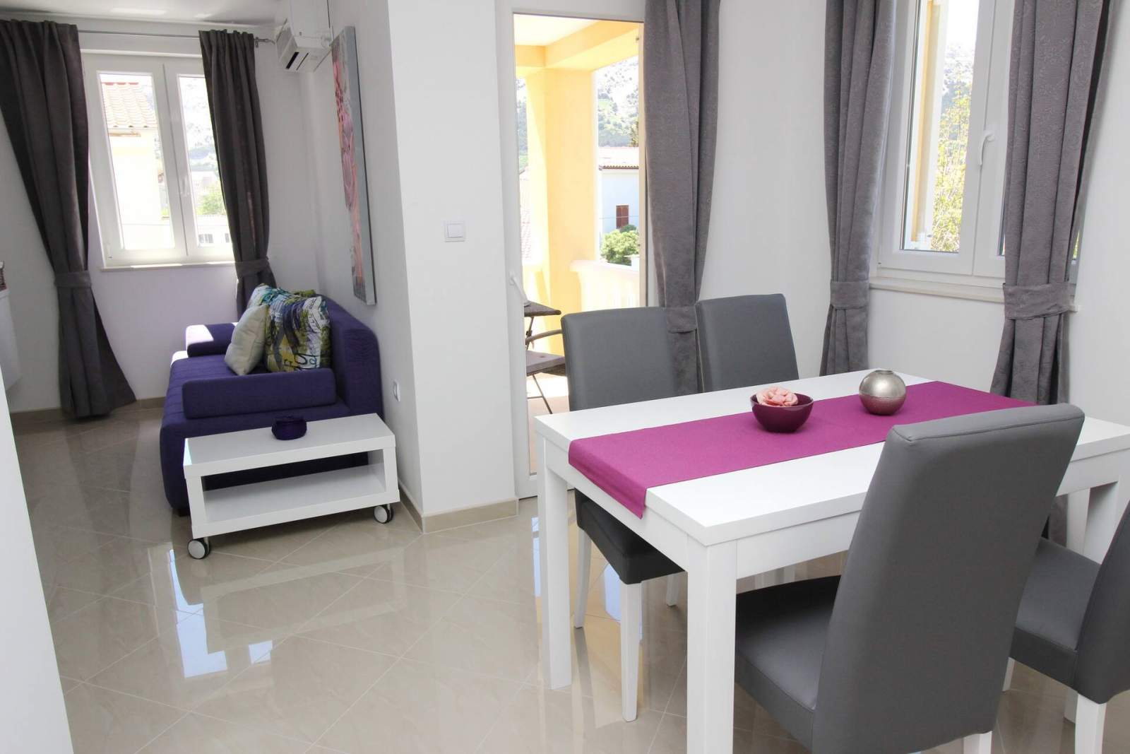 This modern apartment is located in a house with shared pool, only 200 m from the main beach of Baska and 100 m from the city center.