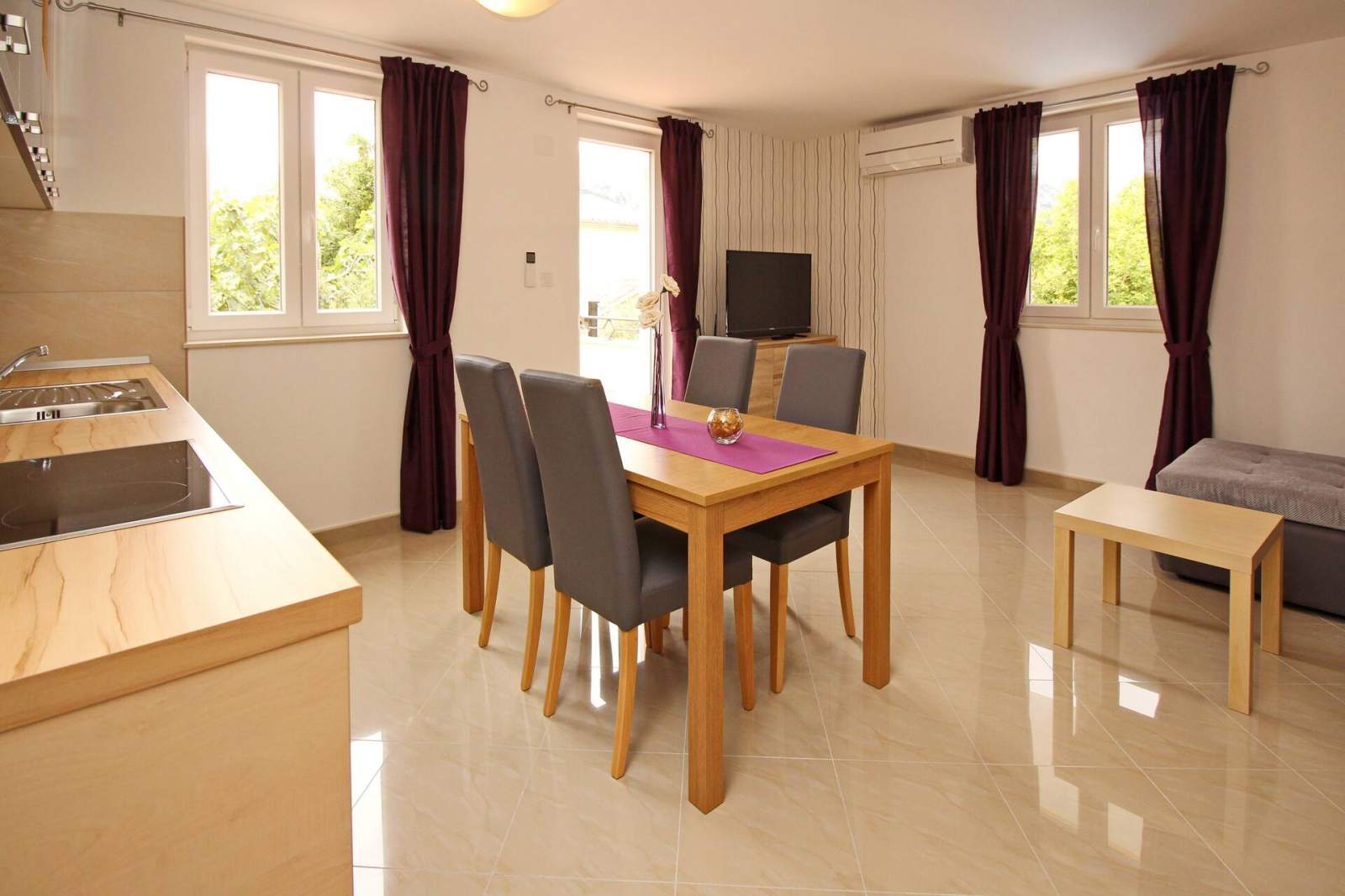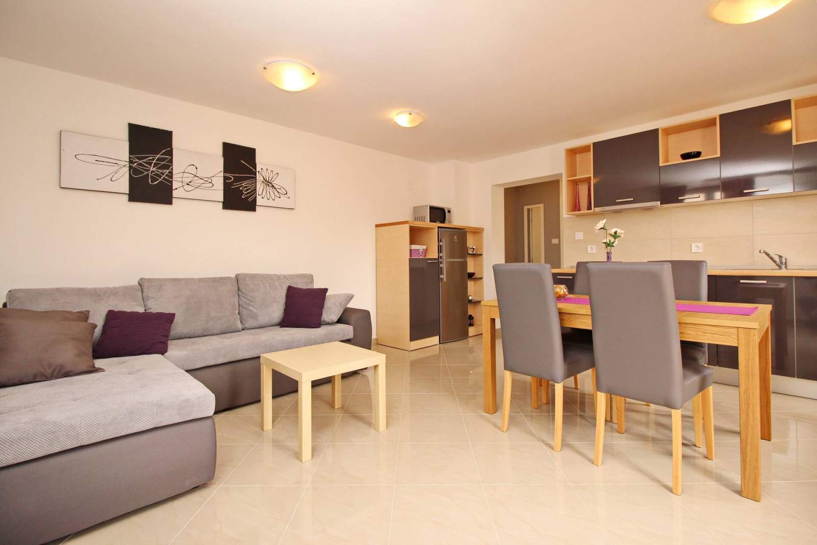 This modern, spacious apartment is located in a house with shared pool, about 300 m from the main beach of Baska and 200 m from the city center.