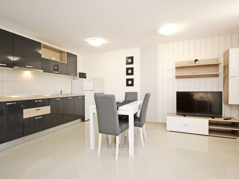 The apartment consists of one bedroom, a bathroom (shower, toilet, washing machine), a living room with air conditioning, SAT TV, free Wi-Fi and with fully equipped kitchen. The kitchen includes an electric stove, fridge with a freezer, microwave, coffee maker and kettle. Kitchen utensils are included.