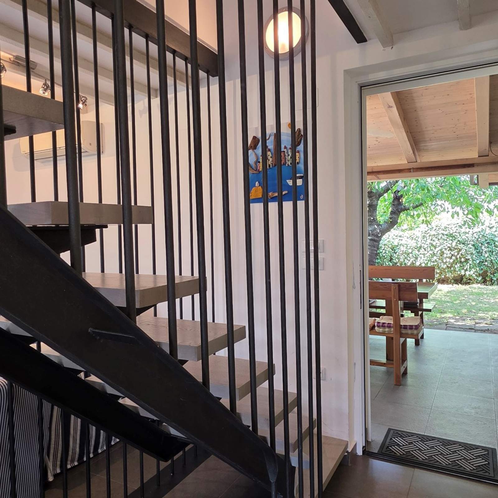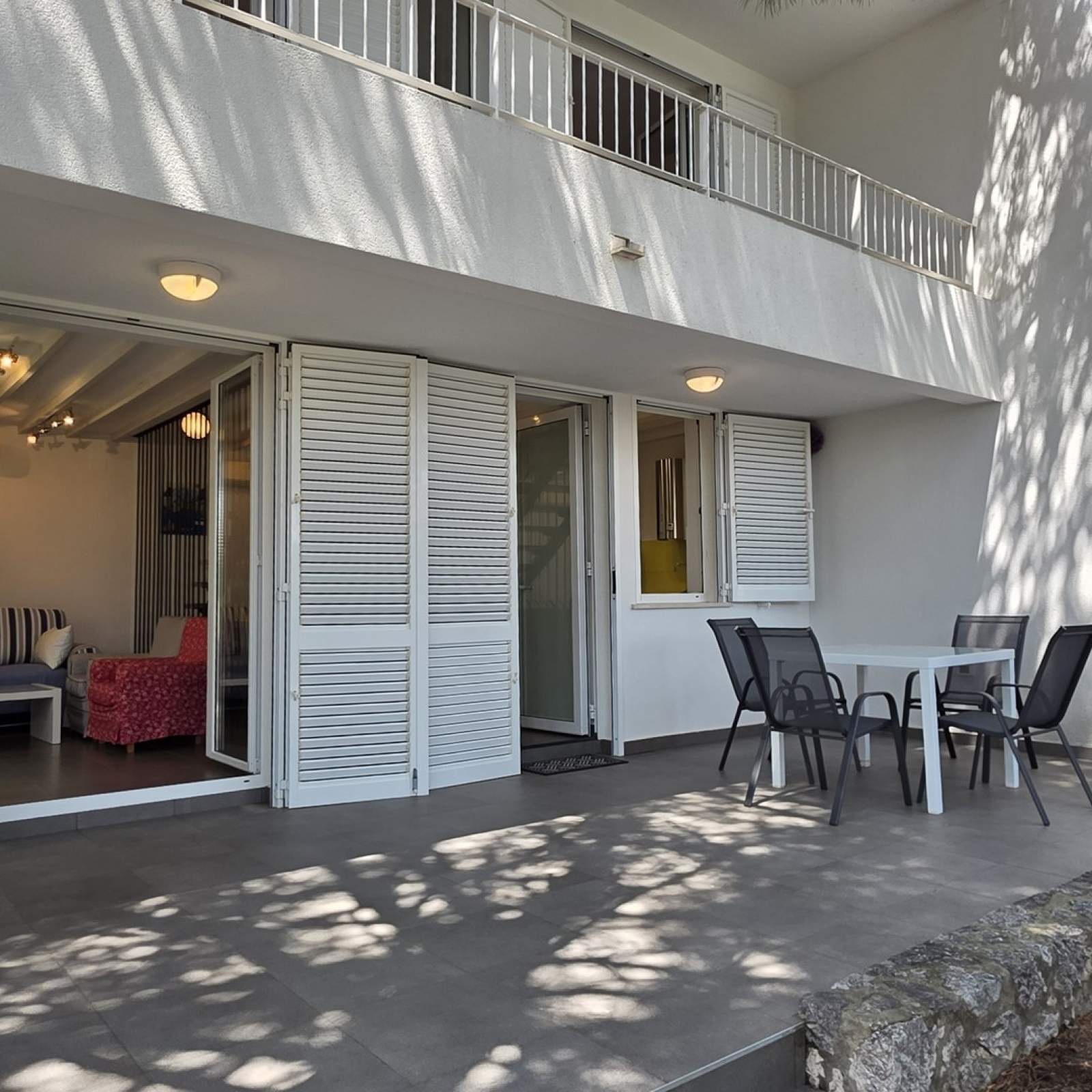 Very good location, two terraces, outdoor shower in addition to the bathroom, air conditioning throughout, enough space even for 5 people. Everything necessary is available in the apartment, the agency is always approachable and very friendly, and bed linen and towels are changed after one week. Wooden staircase to the upper floor with narrow steps.