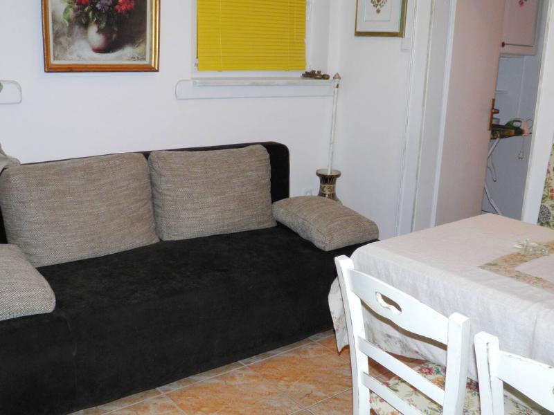 This apartment is located on the ground floor and is ideal for up to three people. The total living space is approximately 32 m2. It includes a bedroom with a double bed. The fully equipped kitchen features all necessary appliances and utensils, and it is accompanied by a dining area for convenient meals at home. The living room has a sofa that can be converted into an extra bed, suitable for one additional person.