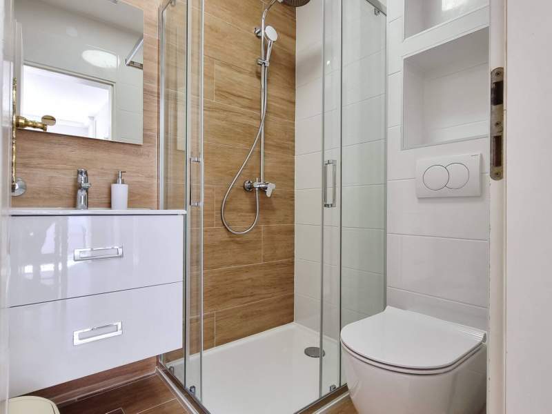 The apartment comes with a fully equipped kitchen and living room, a bathroom (shower, toilet) and a terrace (18 m2).