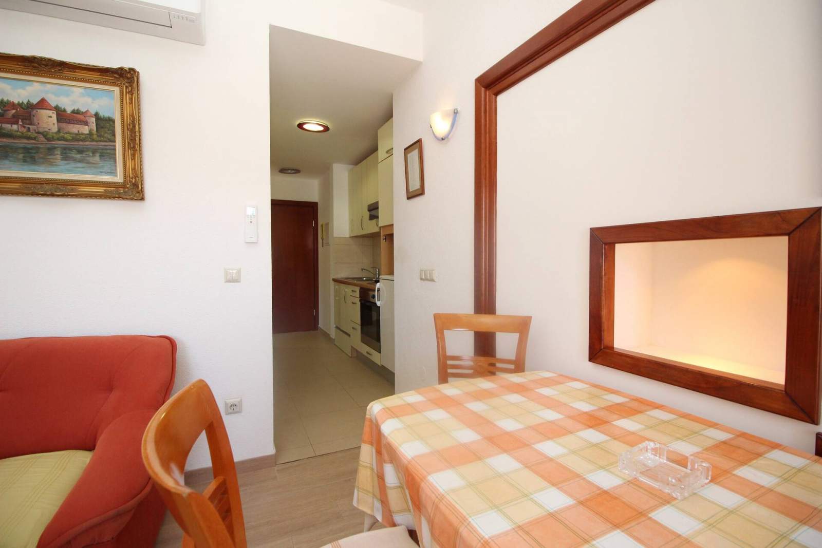 The apartment is equipped with air conditioning, SAT TV and free Wi-Fi.