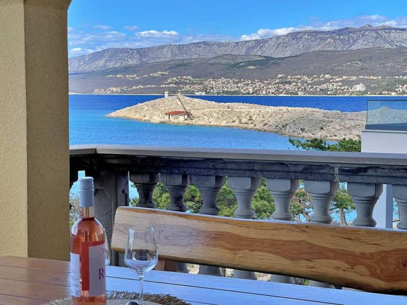 This seafront apartment, just 20 meters from the sea and beach, is located on the first floor and features two bedrooms — one with a queen-size bed and another with two single beds. The open-plan living, dining, and kitchen area includes a couch, air conditioning, and satellite/cable TV. The kitchen is equipped with a 4-burner induction stove, fridge with freezer, coffee machine, kettle, and toaster. The bathroom has a shower and toilet. Step onto the terrace (10 m2) with outdoor furniture and enjoy stunning views of the blue sea. Bed linens, towels, free Wi-Fi, and a parking space are provided. A popular local bistro and a diving center are conveniently located just downstairs, offering traditional Mediterranean cuisine and underwater adventure. In the diving center you can arrange a dive from the boat or from the shore.