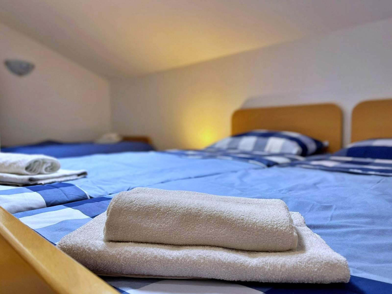 This apartment, just 20 meters from the sea and beach, is located in the attic and features one bedrooms with three single beds. The open-plan living, dining, and kitchen area includes a dining table, a pull-out couch for one person, air conditioning, and satellite/cable TV. The kitchen is equipped with a 4-burner electric stove, fridge with freezer, coffee machine, kettle, and toaster. The bathroom has a shower and toilet. Bed linens, towels, free Wi-Fi, and a parking space are provided. A popular local bistro and a diving center are conveniently located just downstairs, offering traditional Mediterranean cuisine and underwater adventure. In the diving center you can arrange a dive from the boat or from the shore.