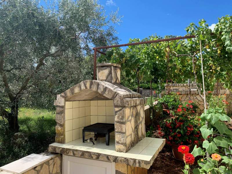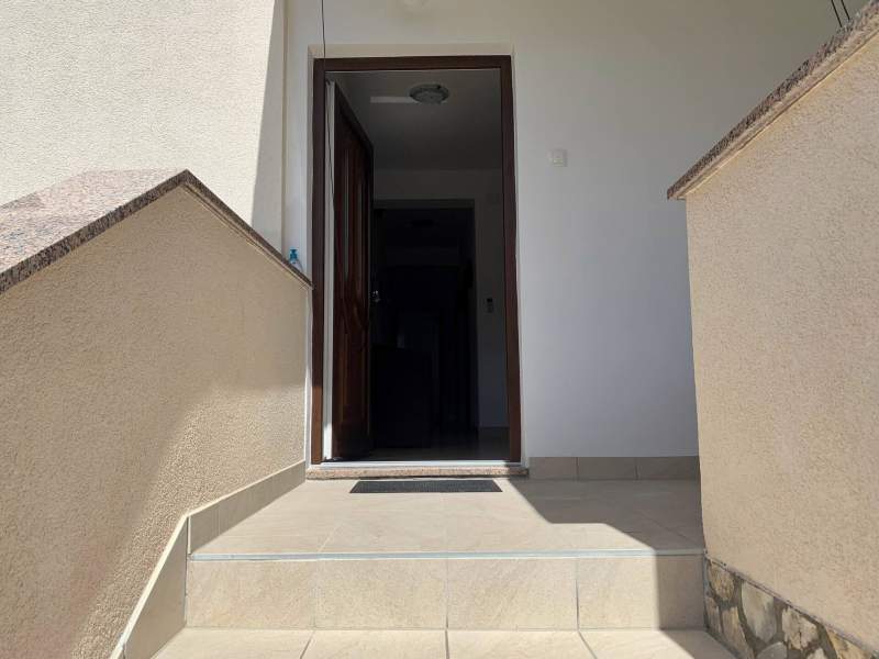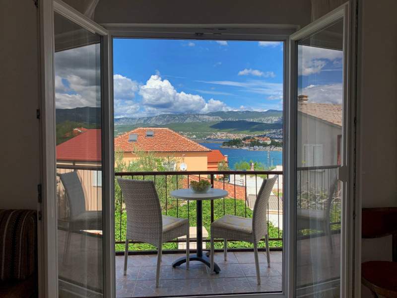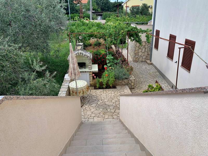 To the front, a beautiful terrace with a view of the greenery; to the rear, a small balcony with a view of the Adriatic Sea. Beautiful, spacious kitchen, all necessary electrical appliances are available, even a small dishwasher! Overall, very spacious. Short walk to the beach, shaded parking for the car, bakery around the corner. Everything was great, except the small sofa in the kitchen was really hard and uncomfortable to sit on while watching TV. We could have used a bit more storage space in the kitchen and bathroom, but we made do with two patio chairs, so it was okay.