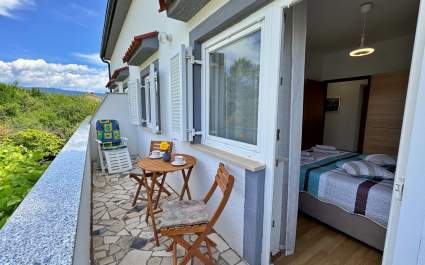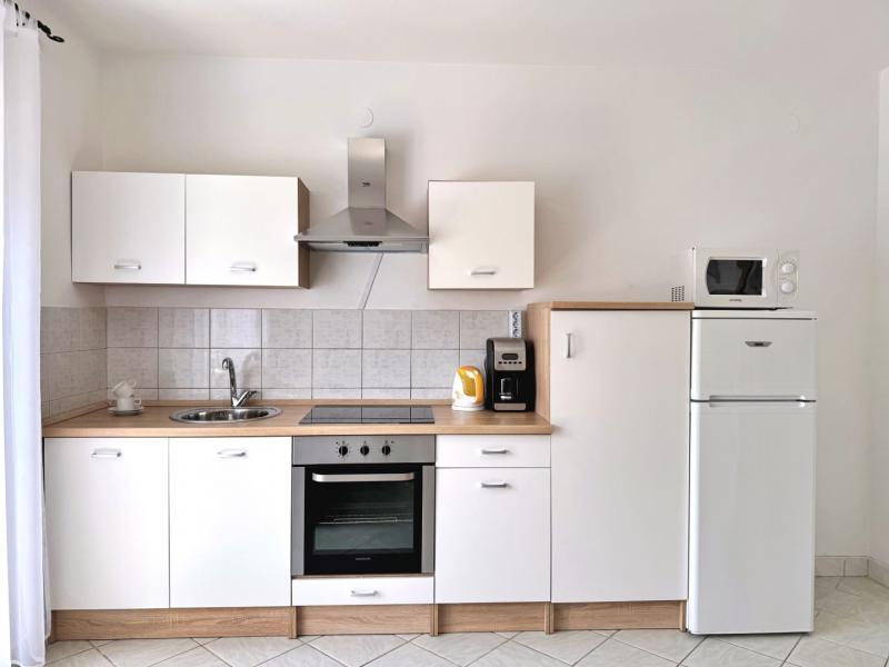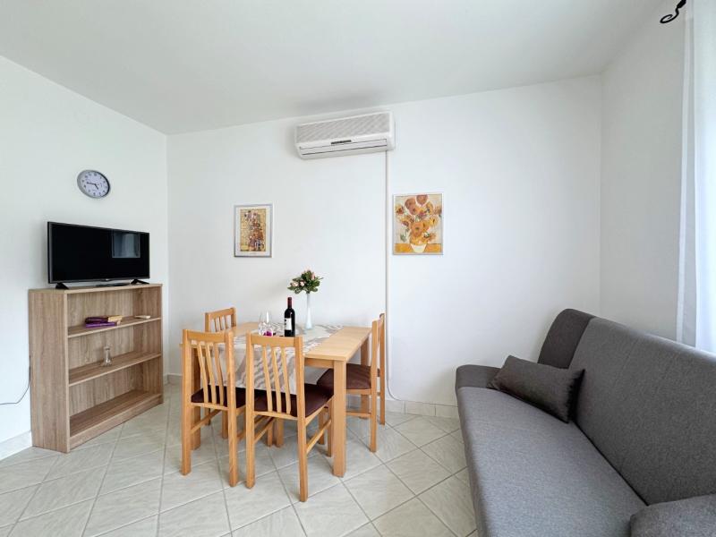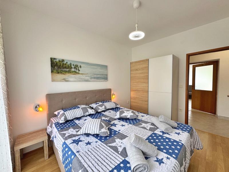 Located just 450 m from the sea and 40 m from a supermarket in a quiet area, this first-floor apartment is perfect for a relaxing stay. It features two bedrooms with queen-size beds, one of which has access to the balcony. The living room and kitchen share an open space equipped with an electric stove, oven, fridge, microwave, toaster, kettle, and coffee machine. The bathroom includes a shower, toilet, bidet, and hairdryer. The balcony (6 m2) with views of greenery is also accessible from the living room. Enjoy amenities like air conditioning, Wi-Fi, and free parking. Guests can also use the shared garden with a BBQ and seating area.