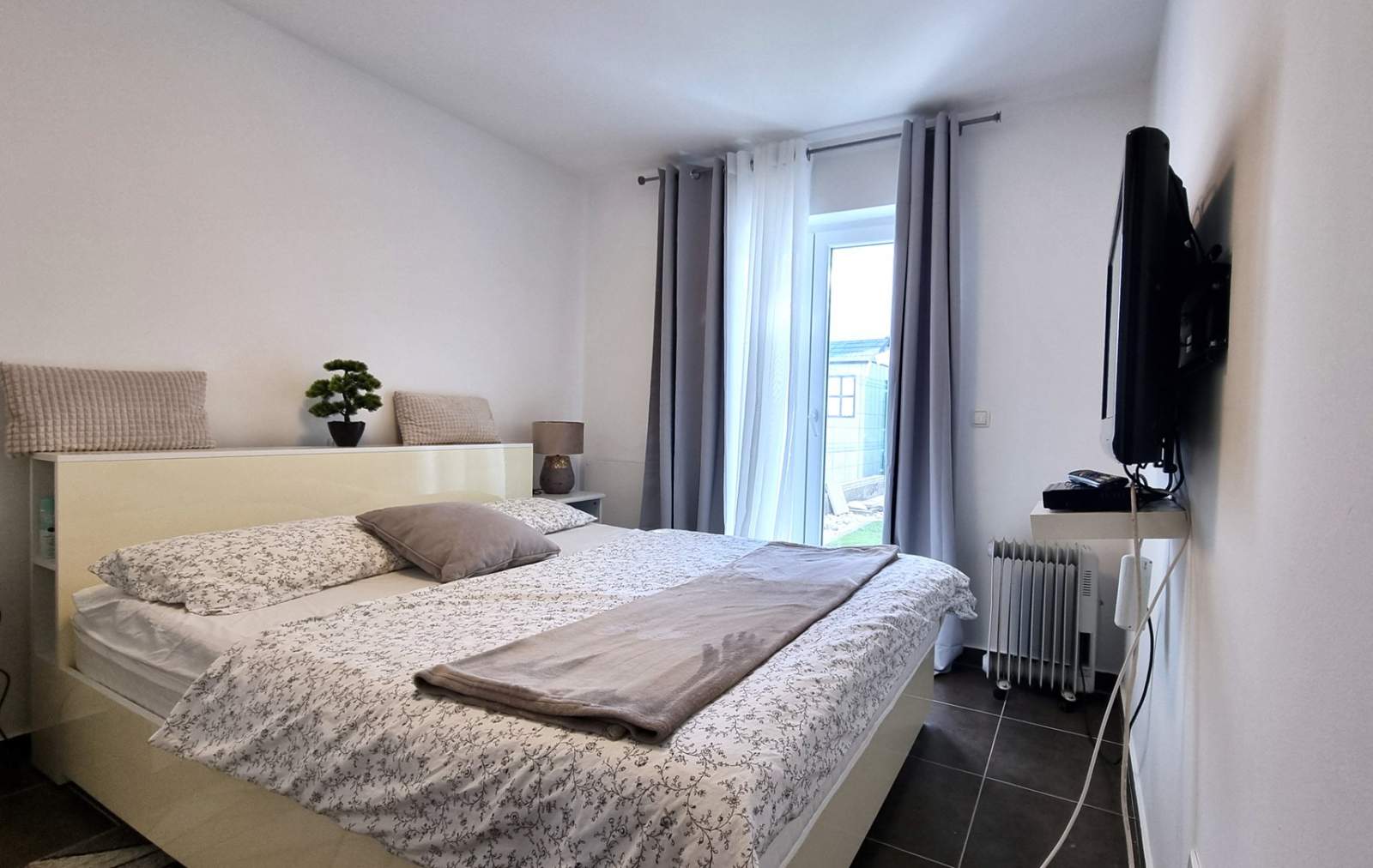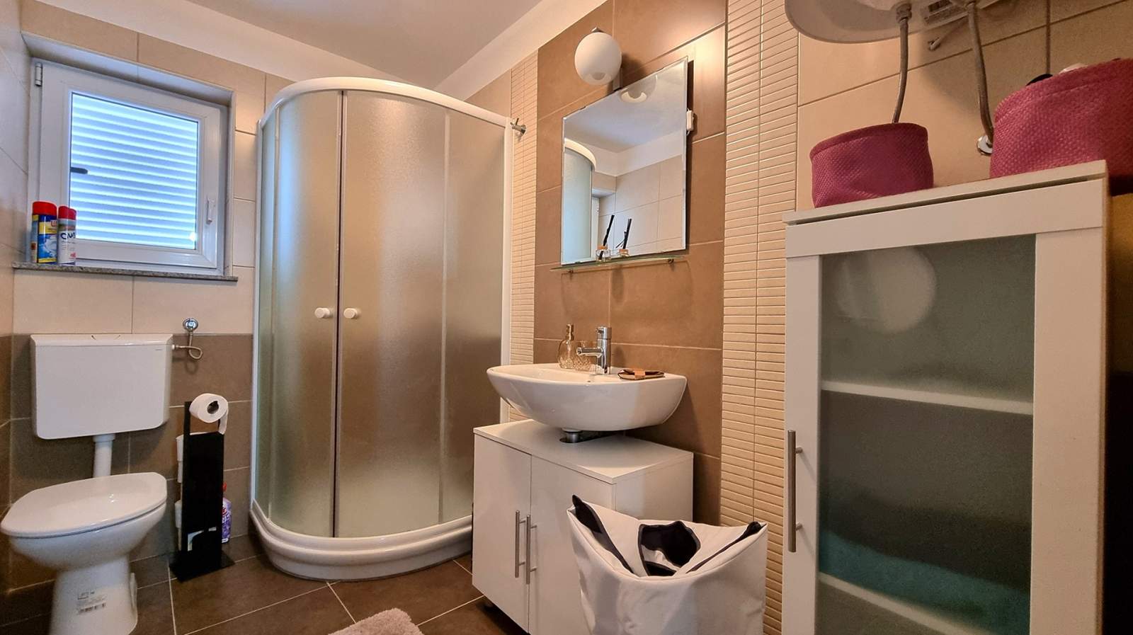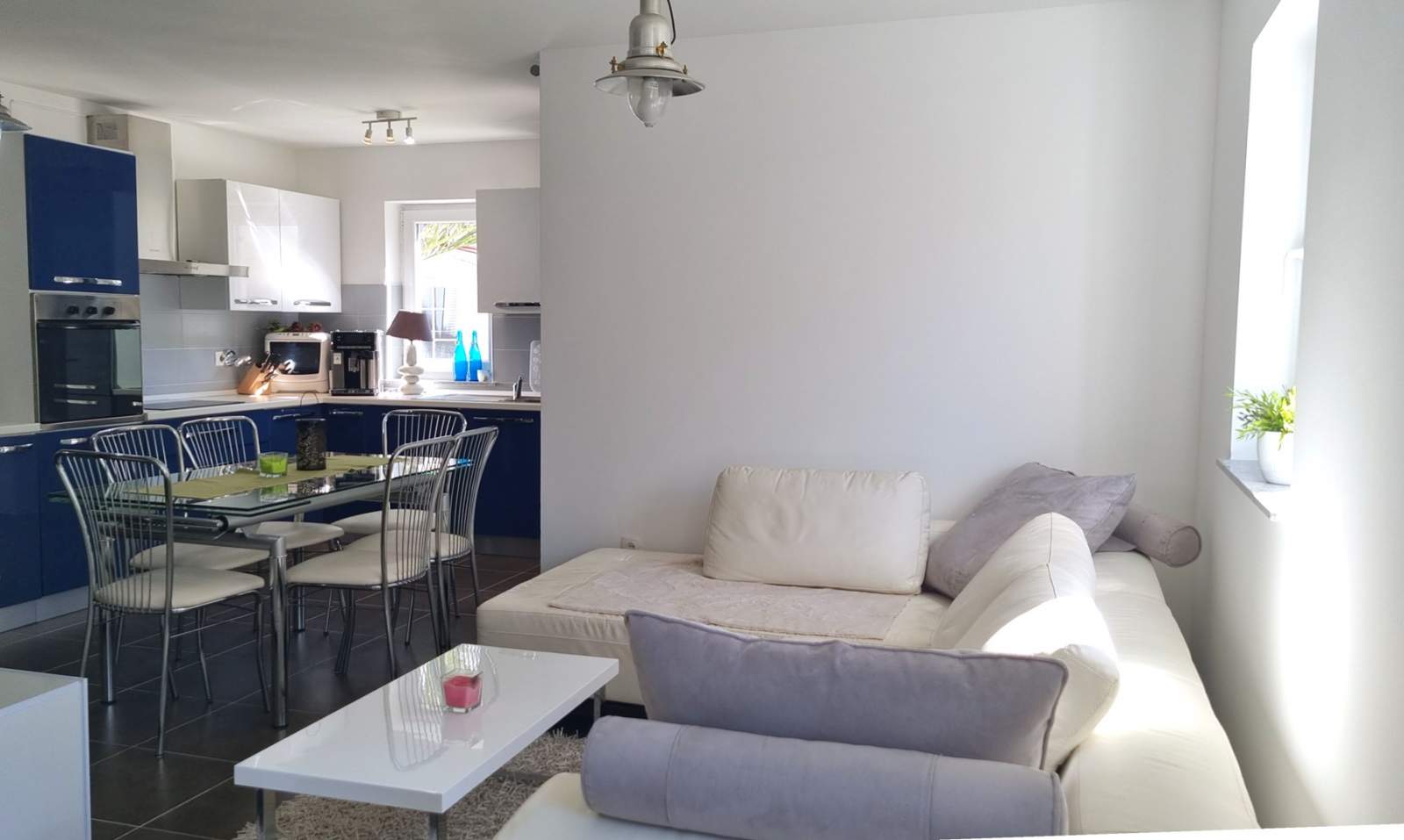 The apartment comes with a fully equipped kitchen with living room and dining area (an additional bed for 2 persons on the couch), 2 bathrooms (shower, toilet, washing machine in one) and a partialli covered terrace with garden (25 m2).