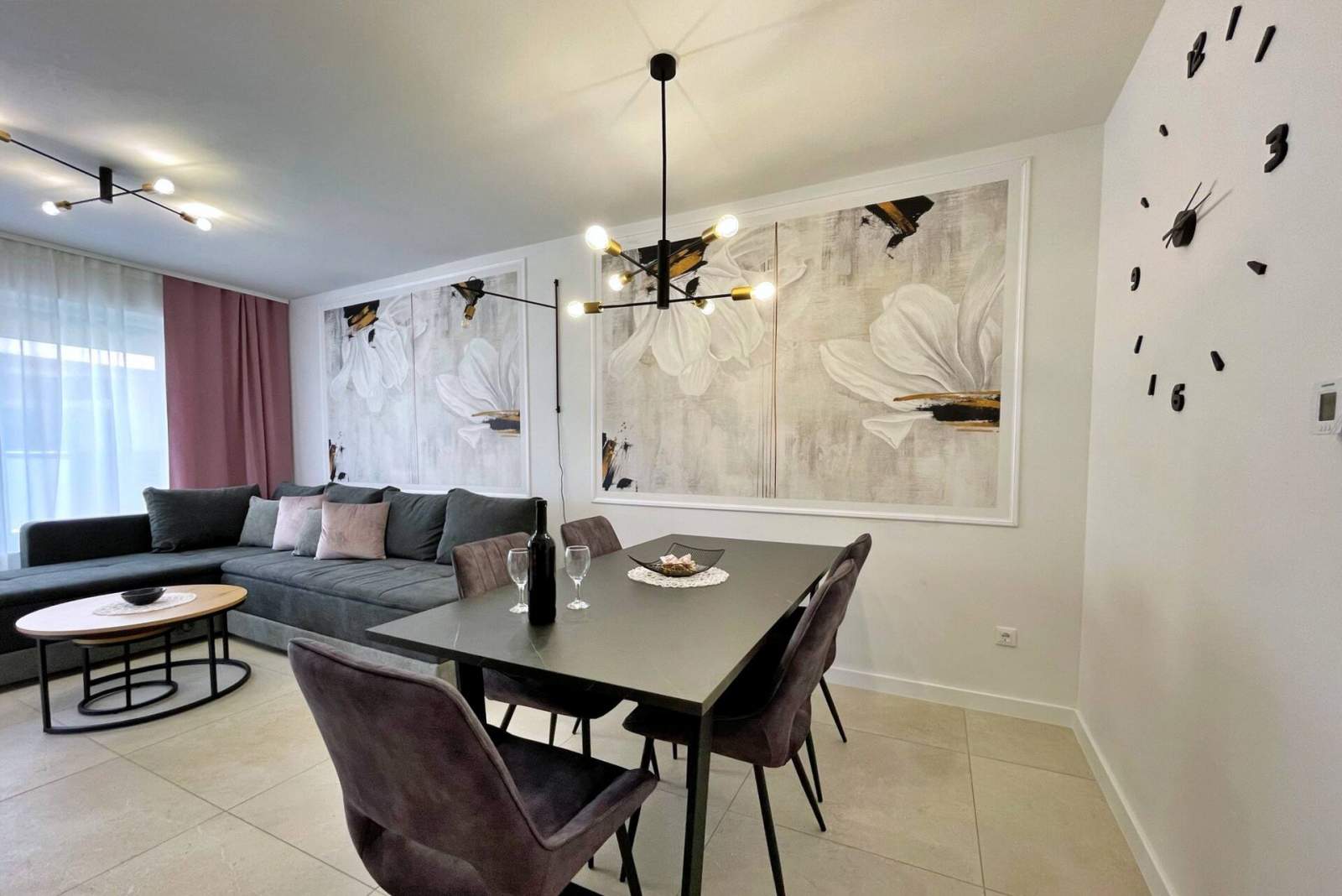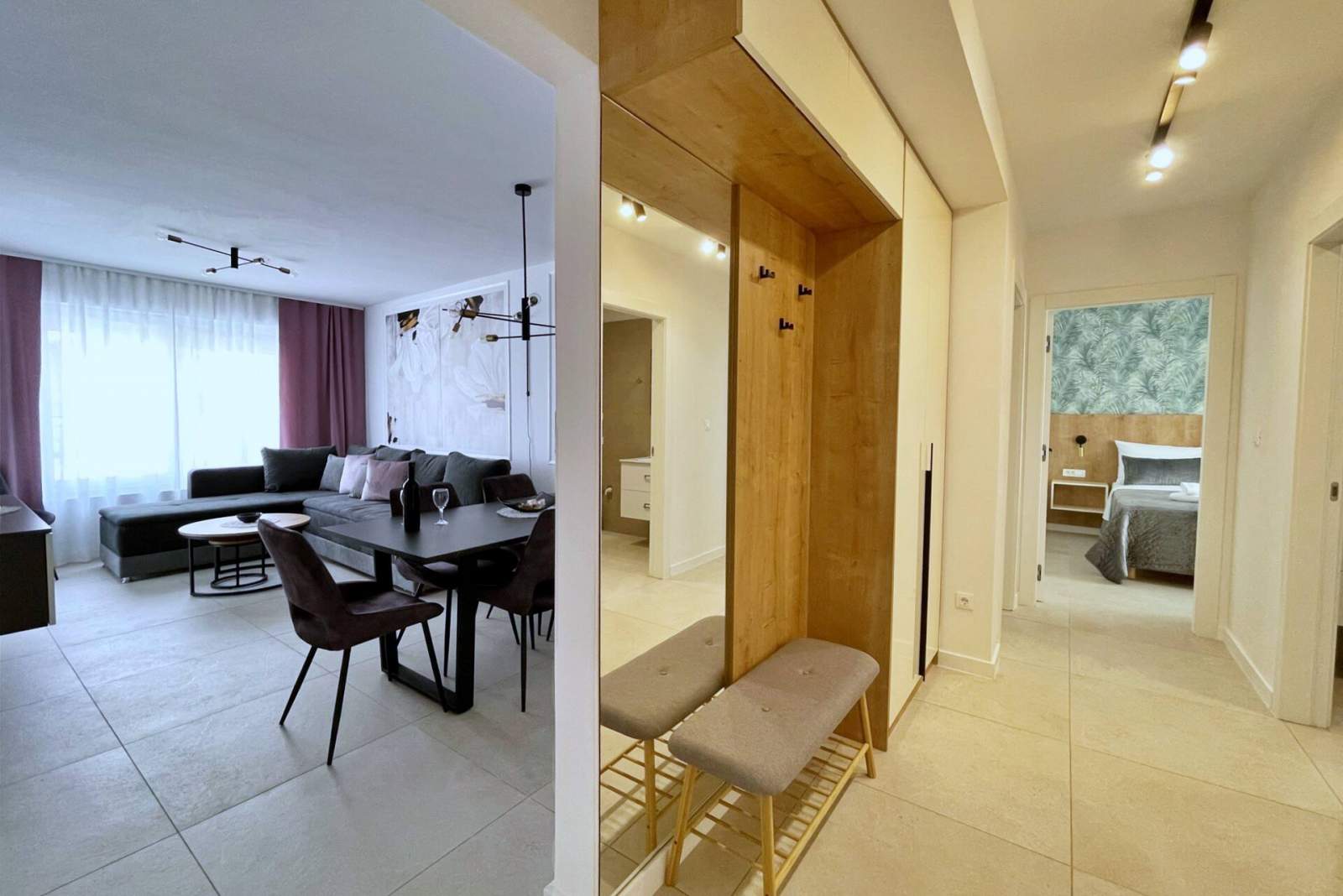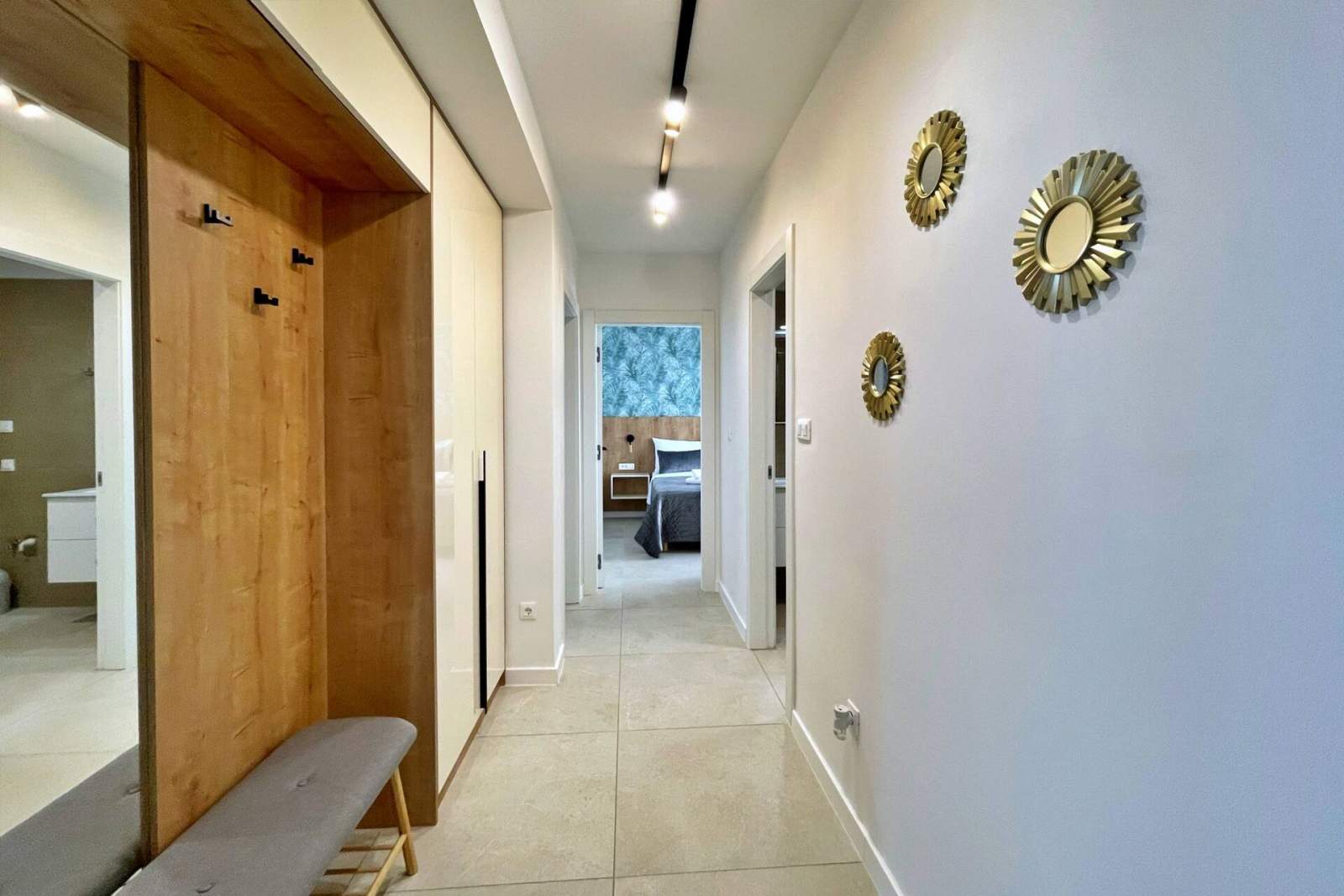 This luxurious, modern seafront apartment is located in a peaceful apartment complex just 30 meters from the sea, surrounded by nature, secluded coves, pebble beaches, and hiking trails. It offers a communal saltwater swimming pool (36 m2) open from May to October, with temperatures typically reaching 20-26°C. The apartment is located on the fist floor and features two bedrooms with a queen-size bed in each, a modern kitchen with an induction hob, refrigerator and freezer, kettle, coffee machine, toaster, microwave, and dishwasher. The bathroom has a shower and a toilet. The dining area and living room provide a cozy space with a sofa and Smart TV, while free Wi-Fi is available throughout.
