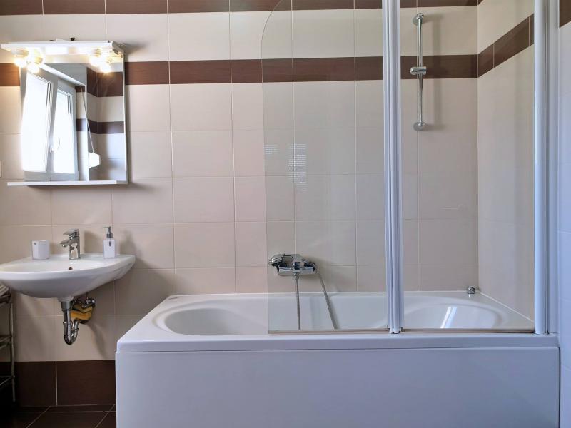 This spacious first-floor apartment, located 250 m from the sea, features three bedrooms with queen beds, one of which has a private 6 m2 balcony. The large 60 m2 terrace, equipped with a dining table and parasol, is perfect for outdoor relaxation. The kitchen includes an electric stove, oven, fridge, dishwasher, coffee machine, and kettle, with a dining table for meals. The living room offers air conditioning, satellite TV, a cozy sofa, and direct access to the terrace. There are two bathrooms: one with a bathtub, toilet, and bidet, and an en suite bathroom with a shower and toilet. Guests enjoy free Wi-Fi, private parking, a BBQ area, and the a baby cot (upon request). Pets are welcome for an additional fee.