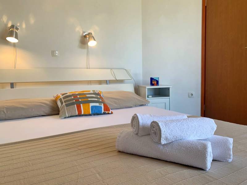 This two-bedroom apartment is just 90 m from a sandy beach, perfect for a relaxing getaway. A spacious 28 m2 terrace with a sea view provides a peaceful retreat on hot summer days. There is also a possibility to barbecue on the terrace. Air conditioning, Wi-Fi, and a dedicated parking spot are included.