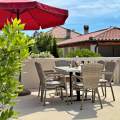 The villa is situated in a good location, right next to the city beach. It is a good place as a base for traveling around the island of Krk. I recommend going to the Potovosce beach near the town of Vrbnik. Beautiful. Olive trees and oleanders grow near the property. They create atmosphere. The area was quiet and peaceful, there were no parties in the distance, in the evenings you could hear music from a distance because local music festivals are often organized in the center. We used the apartment at the very top with a blue glass terrace. We didn't use it. Hot. But the large upper terrace makes up for this lack.
