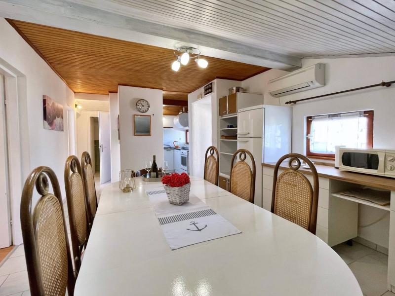 This charming attic apartment on the 2nd floor, located just 250 meters from the sea and a short 290-meter stroll to a sandy beach, offers a perfect retreat with sea views. The spacious 35 m2 private terrace is partially roofed, ideal for dining with its outdoor table, and equipped with a portable BBQ, making it a cozy spot to relax and enjoy the view. Inside, the modern kitchen features everything needed for cooking, including a 4-burner ceran stove, oven, fridge with freezer, coffee machine, kettle, microwave, mixer, and dishwasher. The living/dining area includes a comfortable sofa, dining table, satellite TV, Wi-Fi, and air conditioning, creating a relaxing space for gathering. The three bedrooms include one with a queen-size bed and single bed, and two others with queen beds. The apartment has two bathrooms for added convenience—one with a bathtub, toilet, washing machine, and hairdryer, and a second with a shower and toilet. Private parking is available, and all essentials like bed linens, towels, iron, and ironing board are provided to make your stay comfortable and carefree.