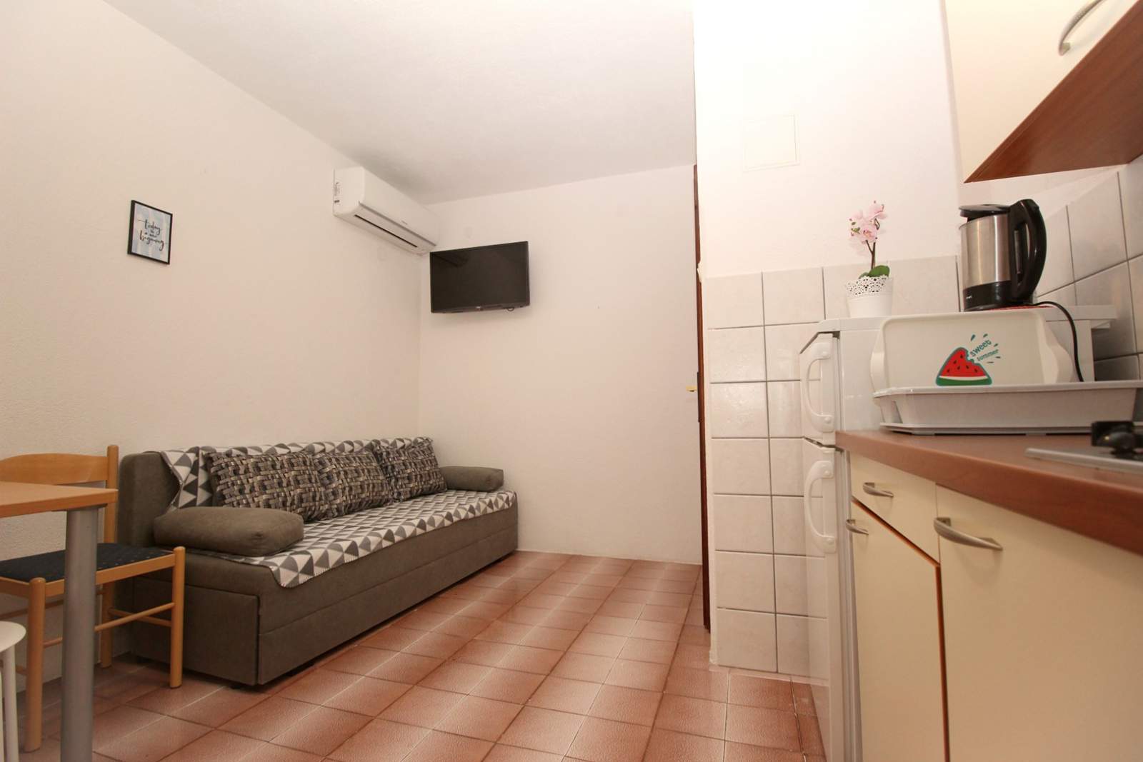 The apartment is equipped with air conditioning, SAT TV and free Wi-Fi.