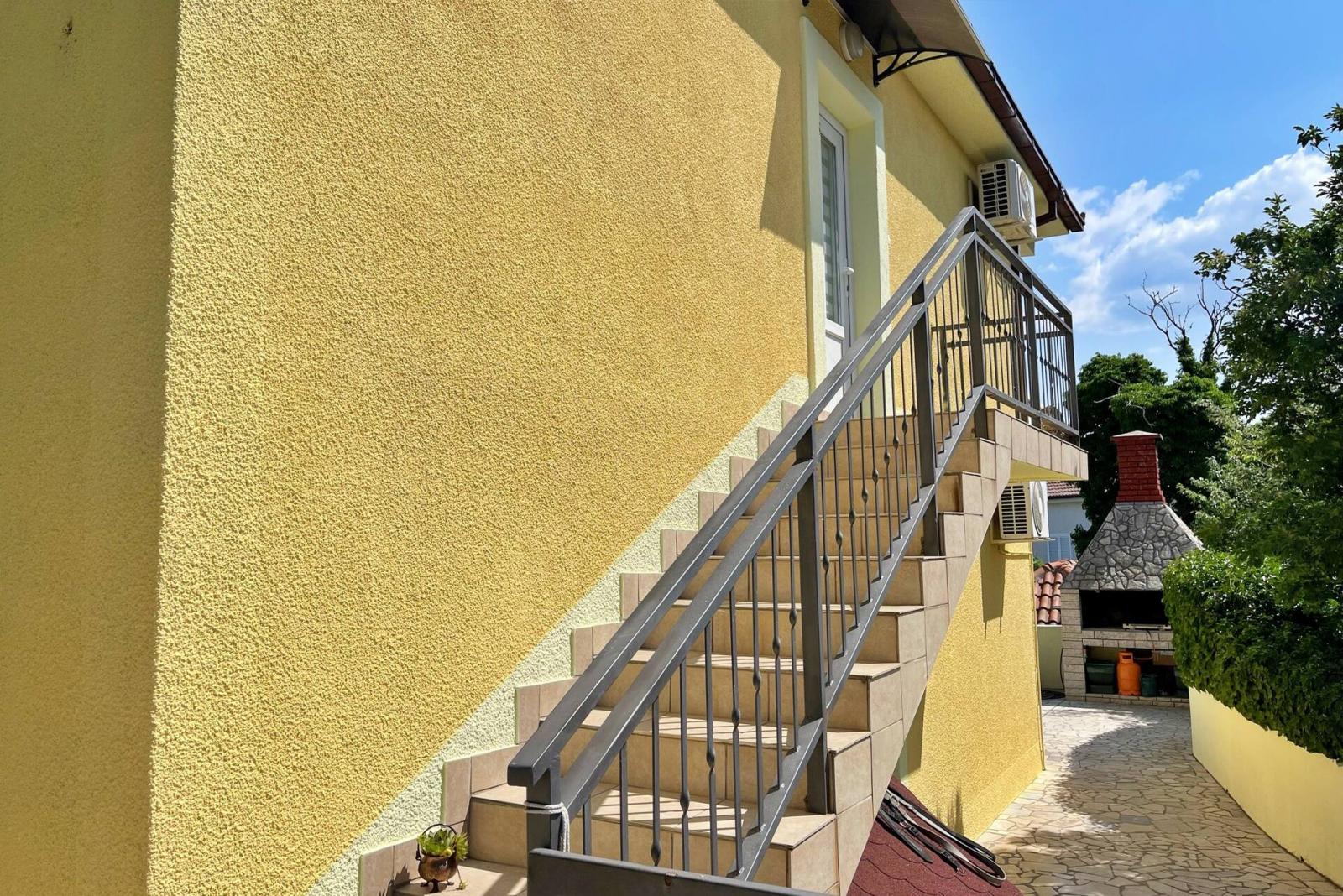 Beautiful view from the balcony, welcoming and friendly owners, perfect parking, quiet location, large courtyard. For us, a group of five, this is a spacious and nicely furnished apartment with good amenities and plenty of living space. The kitchen is very well equipped, and the balcony is a good size. The panoramic sea view is, of course, the highlight. German TV, Wi-Fi, air conditioning, and utilities are all included in the price. Although pets are allowed, there is neither pet hair nor any smell :) Good location for further excursions.