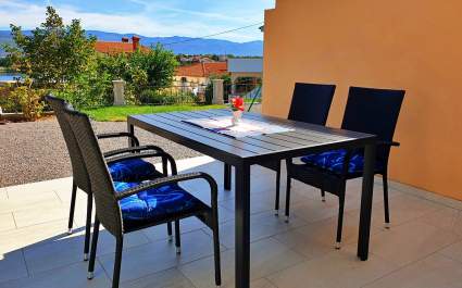 Views from balcony is stunning! The house and apartment is new. The apartment was beautiful, practical, every room big enough, the mattresses were comfortable, the cabinets big and beautiful, the kitchen also beautiful and well equipped. The garden also beautiful, everything well maintained and clean. The caretaker is incredibly sweet and helpful. Although the apartment is in the "attic ", it was not too hot (climate is available anyway).