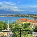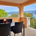This cozy attic apartment offers two bedrooms with queen beds and a 15 m2 roofed terrace with a dining table and breathtaking panoramic sea views. The kitchen is fully equipped with a ceramic stove, oven, fridge with freezer, dishwasher, coffee machine, kettle, and a dining table. The living room features air conditioning, satellite TV, a sofa, and terrace access. The apartment includes a bathroom with a shower, toilet, and hairdryer. Guests enjoy free Wi-Fi, private parking, a gas BBQ, and access to a shared yard with a children's playground. Located just 160 m from the concrete and pebble beach, the house also offers floor cooling and heating for year-round comfort.