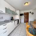 This ground-floor apartment, just 500 m from the sea and town center, offers a comfortable stay with two bedrooms, each featuring a queen-size bed. The living room includes a dining table, satellite TV, and air conditioning. The fully equipped kitchen has a 4-burner induction stove, oven, fridge with freezer, coffee machine, kettle, toaster, and dishwasher. Outside, relax on the 20 m2 roofed terrace with garden views, shared with the neighboring apartment. Additional amenities include a shared BBQ, free parking, and provided bed linens and towels.