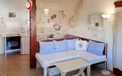 Apartment for 2-3 persons on the ground floor, surface around 50 m2, with one bedroom (queen size and a single bed).