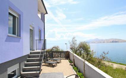 This one bedroom subterranean (underground) apartment is located only 10 m from the sea and 20 m from the nearest pebble beach. Apartment capacity is for 2-4 persons, there is one bedroom (queen size and a single bed), fully equiped kitchen with living roome (sleep couch for 1 person), bathroom (shower, toilet), terrace (on the floor above), air condition and free Wi-Fi. Private parking place in front of the house. Distance to the center is 1 km, restaurant 600 m. Pets are allowed surcharge.