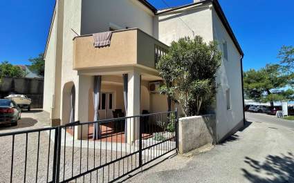 Enjoy a relaxing stay in the charming village of Šilo on Krk Island, just 95 m from the beach and 150 m from the center. This cozy apartment for 4 offers two queen bedrooms, a bathroom with shower, and an open kitchen-living area with dining table, sofa, and satellite TV. The kitchen is fully equipped, including a dishwasher and microwave. Outside, enjoy a 15 m2 covered terrace, a shared larger terrace, BBQ access, and private parking. Air conditioning, Wi-Fi, and a baby cot are included.