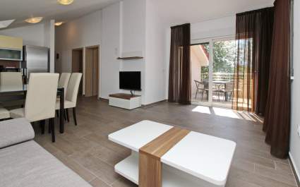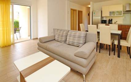 Apartment for 4-5 persons on the ground floor, surface around 60 m2, with 2 bedrooms.