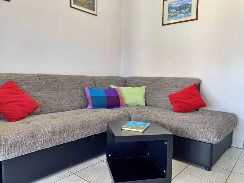 Smješten samo 210 metara od mora i centra mjesta, ovaj apartman na prvom katu nudi praktičnost i udobnost. Sadrži spavaću sobu s bračnim krevetom, kao i kauč na razvlačenje u dnevnom boravku. Uživajte u prostranoj, natkrivenoj terasi (20 m2) s pogledom na more i garniturom za sjedenje, koju dijelite sa susjednim apartmanom. Unutra ćete pronaći dobro opremljenu čajnu kuhinju s električnim štednjakom, mini-hladnjakom, mikrovalnom pećnicom, tosterom, aparatom za kavu i kuhalom za vodu. Sadržaji uključuju Wi-Fi, satelitsku/kabelsku TV, klima uređaj, kupaonicu s tušem i sušilom za kosu, glačalo, besplatan parking i zajednički roštilj u dvorištu. Pješčana plaža udaljena je 250 metara od apartmana.