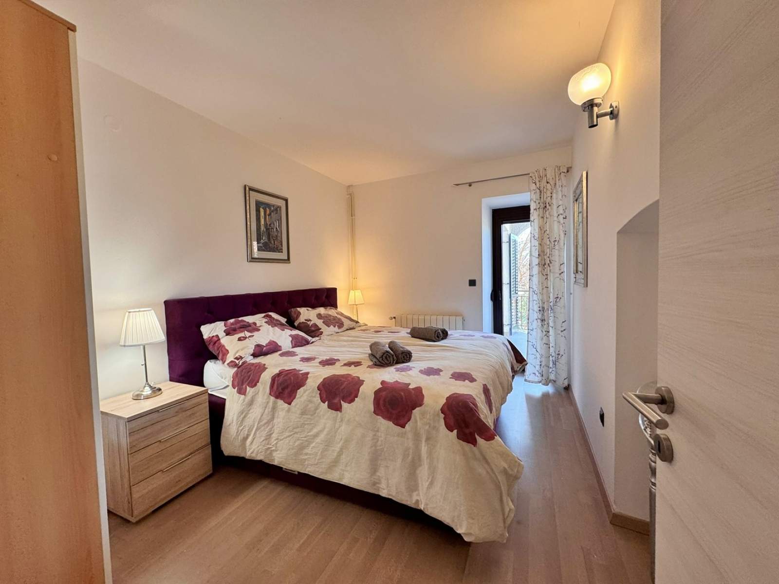 Ima dvije spavaće sobe sa bračnim krevetima. Jedna spavaća soba ima klimu i dodatnu kupaonicu s tušem i WC-om. Druga kupaonica ima tuš, WC i perilicu rublja.