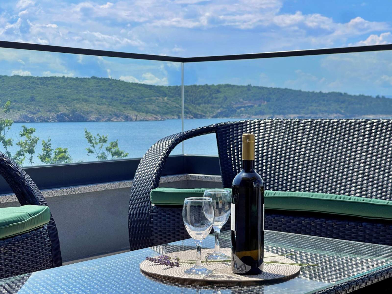 Ovaj luksuzan i moderan apartman uz more nalazi se u apartmanskom kompleksu samo 30 metara od mora, okružen prirodom, skrovitim uvalama, šljunčanim plažama i pješačkim stazama. Nudi zajednički bazen s morskom vodom (36 m2) otvoren od svibnja do listopada, s temperaturama koje obično dosežu 20-26°C. Apartman se nalazi na drugom katu i sastoji se od dvije spavaće sobe s bračnim krevetom u svakoj, moderne kuhinje s indukcijskom pločom za kuhanje, hladnjakom i zamrzivačem, kuhalom za vodu, aparatom za kavu, tosterom, mikrovalnom pećnicom i perilicom posuđa. Kupaonica ima tuš i WC. Blagovaonica i dnevni boravak pružaju udoban prostor s kaučem i Smart TV-om, dok je besplatan Wi-Fi dostupan u cijelom objektu.