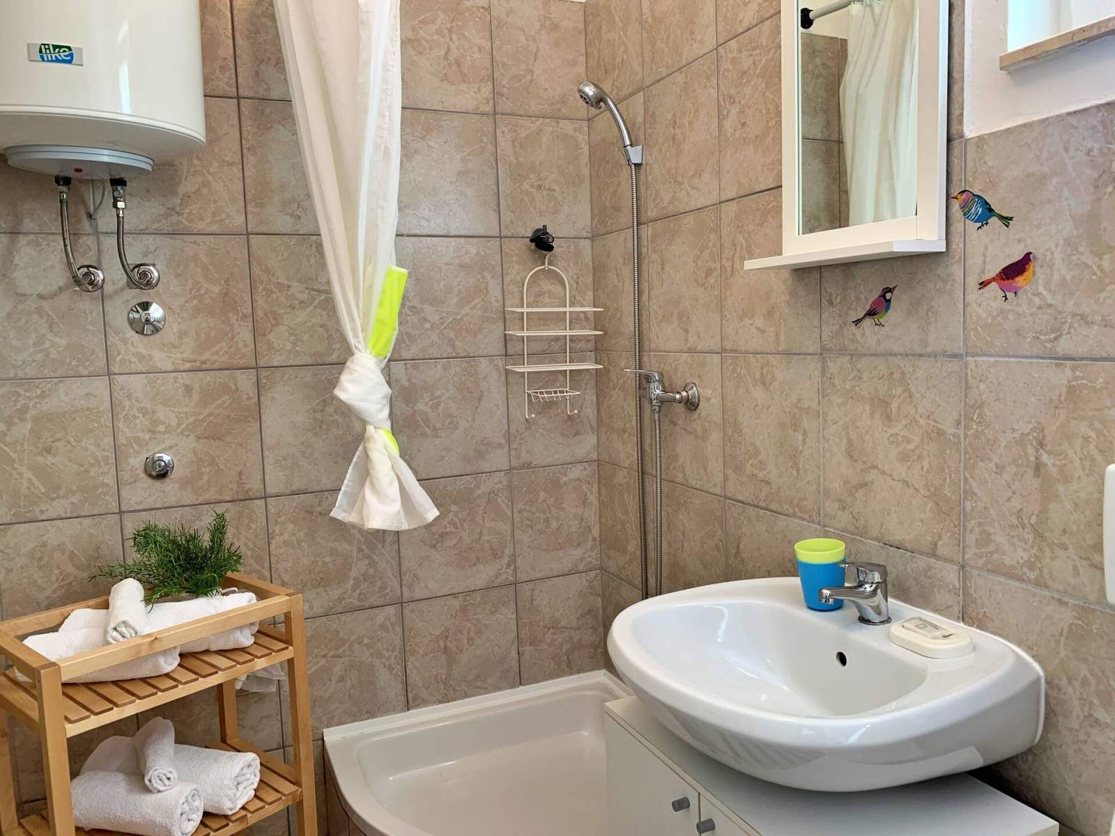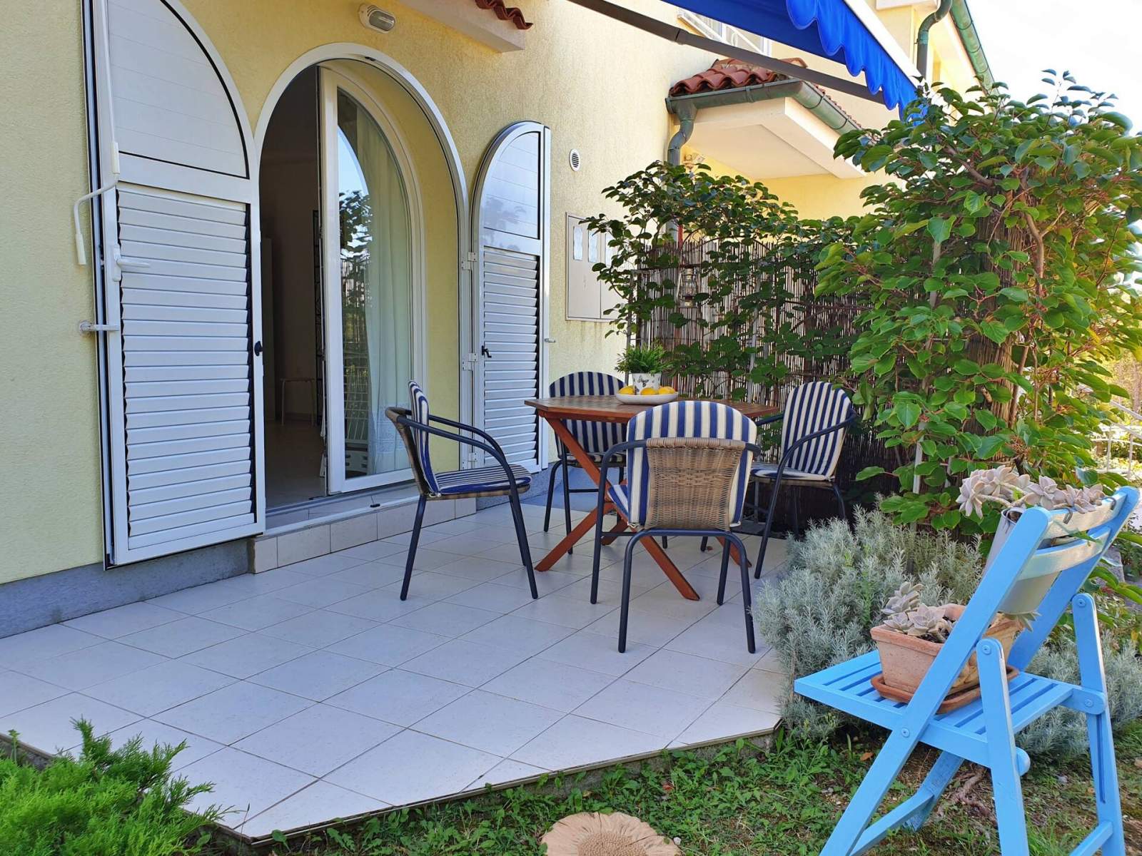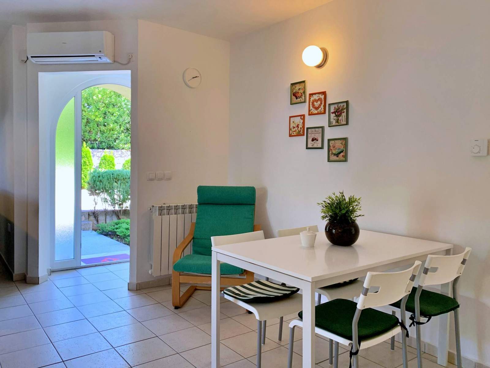Uživajte u savršenom odmoru u ovom lijepo uređenom apartmanu u prizemlju namijenjenom za 2-4 osobe. Ugodan prostor uključuje spavaću sobu s udobnim bračnim krevetom te kauč na razvlačenje za dvoje u dnevnoj sobi. Kupaonica se sastoji od tuša i WC-a. Otvorena kuhinja i blagovaonica potpuno su opremljeni električnim štednjakom, hladnjakom, zamrzivačem, perilicom posuđa, aparatom za kavu, kuhalom za vodu, tosterom i mikrovalnom pećnicom—svim što vam je potrebno za ugodan boravak. Izađite na terasu od 8 m2 s pergolom za objedovanje na otvorenom ili iskoristite zajednički roštilj i vanjski tuš.