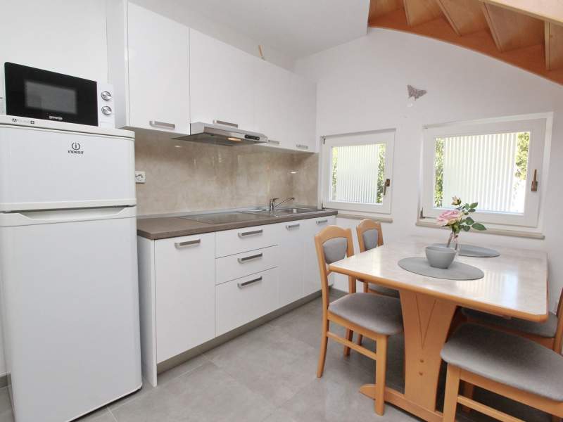 U prizemlju svakog apartmana nalazi se opremljena kuhinja s blagovaonicom, dnevnim boravkom (dodatni krevet na kauču za 2 osobe) te terasom (10m2).