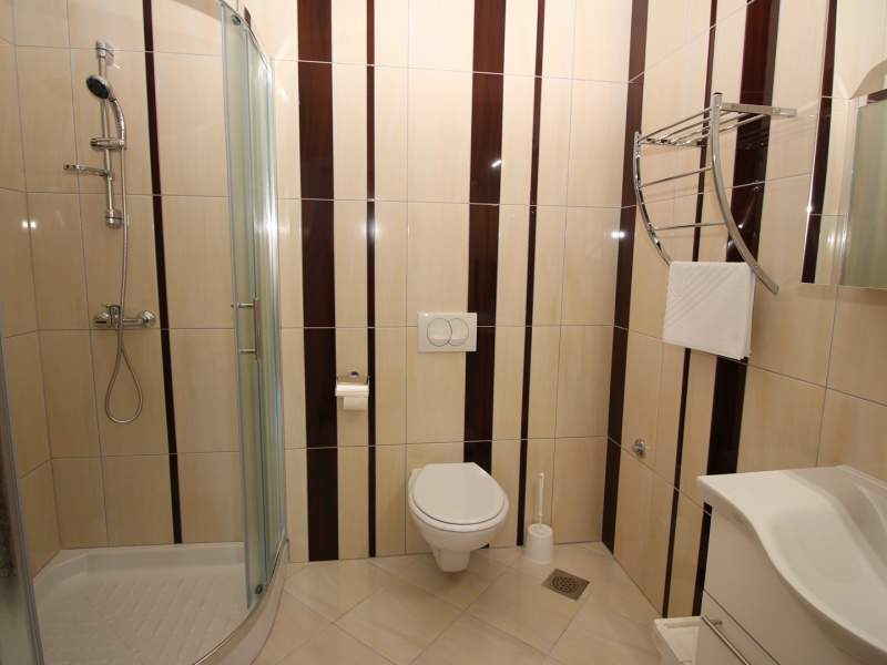 The apartment consists of one bedroom, a bathroom (shower, toilet, hair dryer, washing machine), a bright living area with air conditioning, SAT TV, free Wi-Fi and with fully equipped kitchen. The kitchen includes an electric stove, fridge with a freezer, dishwasher, microwave, coffee maker and kettle. Kitchen utensils are included.