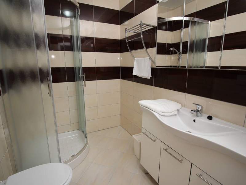 The apartment consists of two bedrooms, a bathroom (shower, toilet, hair dryer, washing machine), a bright living area with a sofa bed for 1 person, air conditioning, SAT TV, free Wi-Fi and with fully equipped kitchen. The kitchen includes an electric stove, fridge with a freezer, dishwasher, microwave, coffee maker and kettle. Kitchen utensils are included.