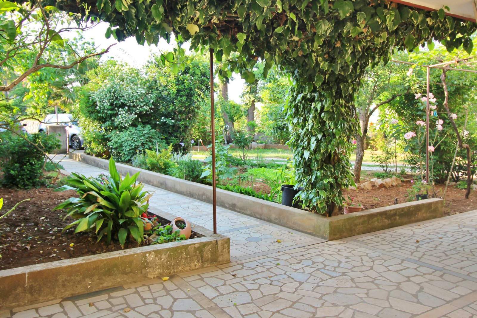 Apartman je bio velik, dovoljno prostora za 6 osoba. Sve sobe su imale balkon, što je bilo lijepo. Dnevni boravak lijepo renoviran, kuhinja dobro opremljena. Jedino je spavaća soba bila malo stara, kreveti su bili klimavi, neudobni. Bile su dvije kupaonice, u maloj s tušem stalno je bilo tople vode, ali u drugoj je dolazila samo topla voda i brzo se praznila. Lijep veliki roštilj u vrtu. Sve u svemu, boravak je bio ugodan.